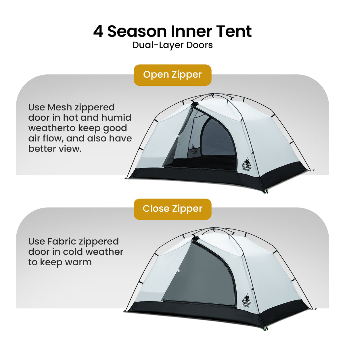 | 4-season design with 3000mm waterproof rating and a removable blackout outer tent