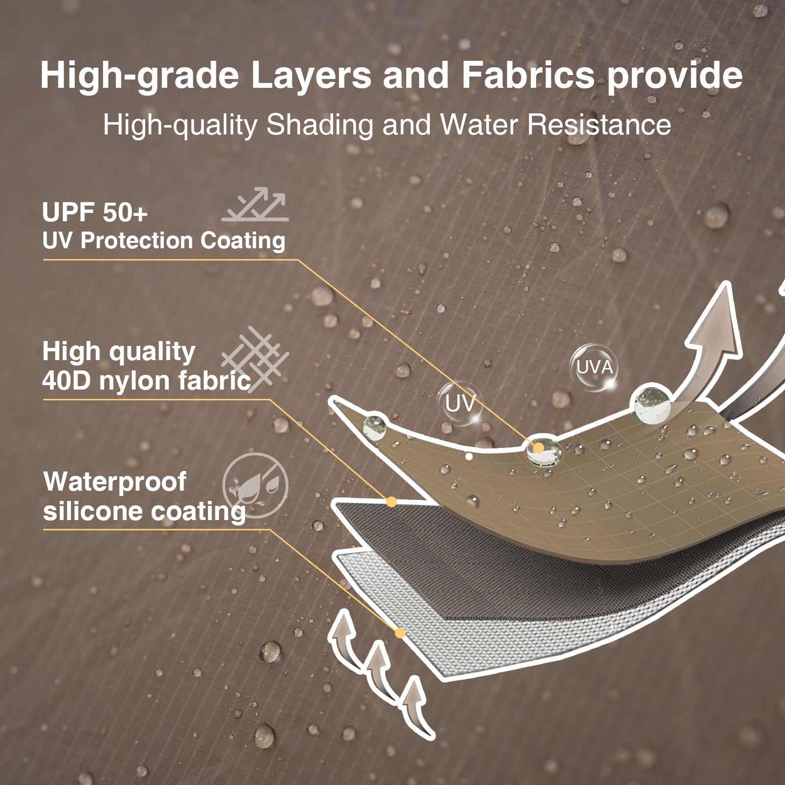 | 3000MM WATERPROOFED: Single-layered PU coating offering 3000mm waterproof performance and UPF50+ sun protection.