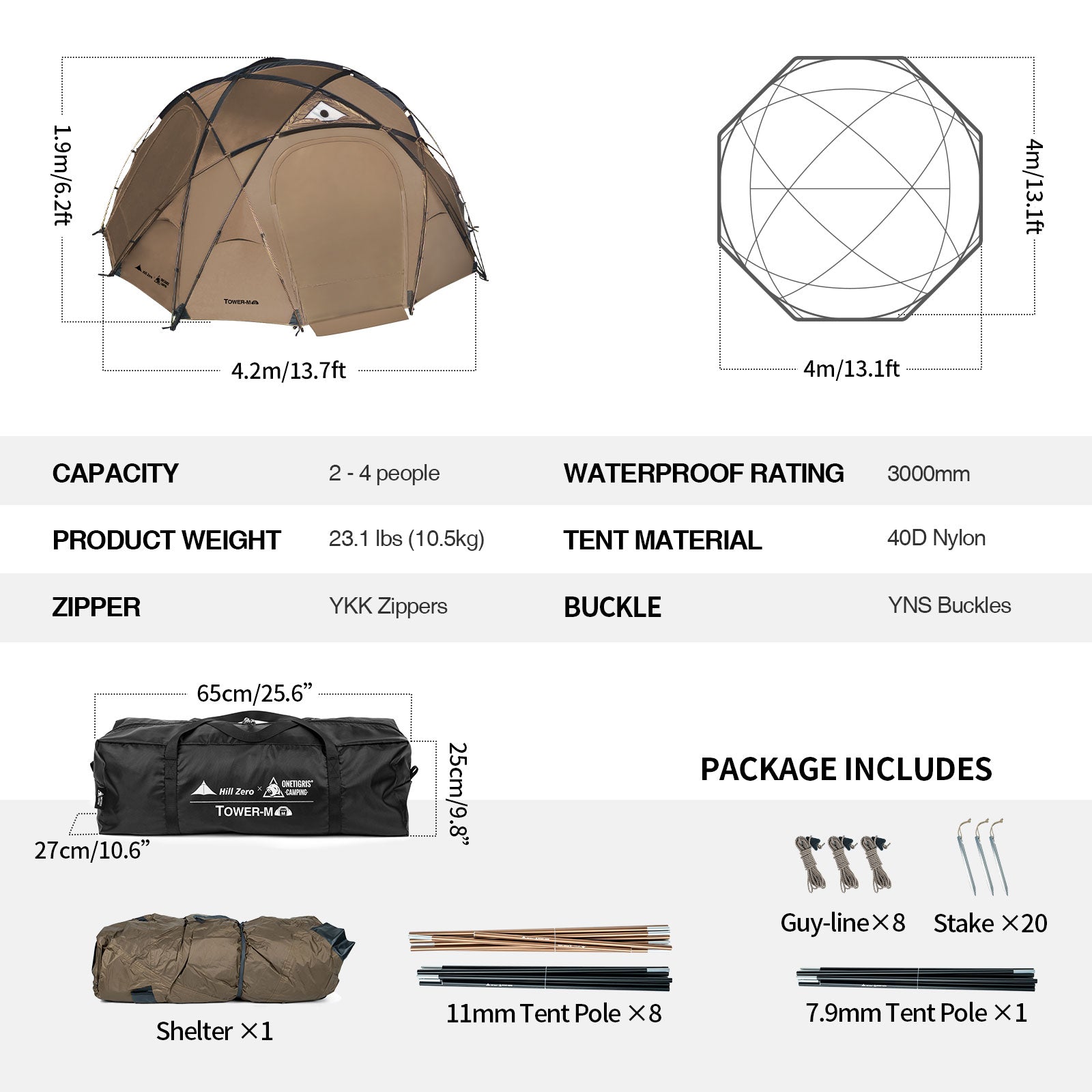 Unfolded Size – 4m*4.2m*1.9m/13.1ft*13.7ft*6.2ft