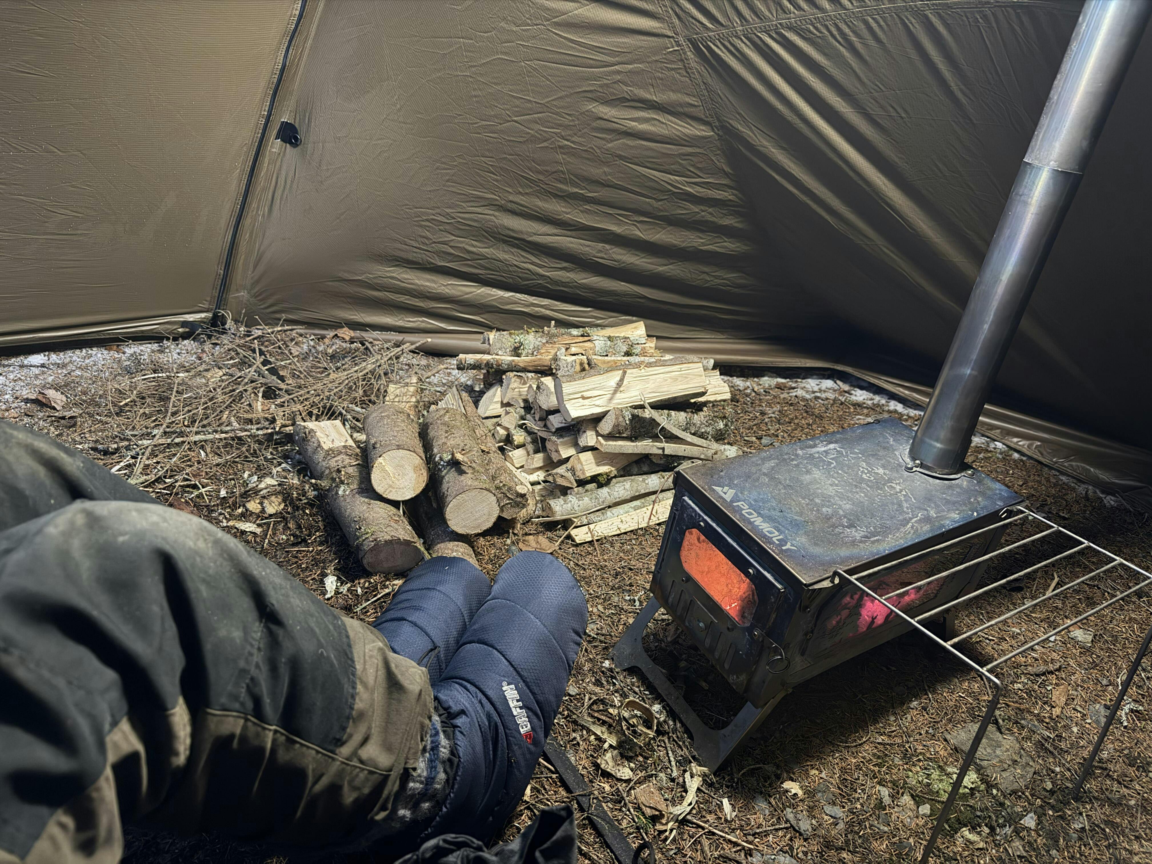 Integrated stove jack lets you run a wood-burning stove inside safely during winter expeditions, with sufficient space for the campers and a stove setup