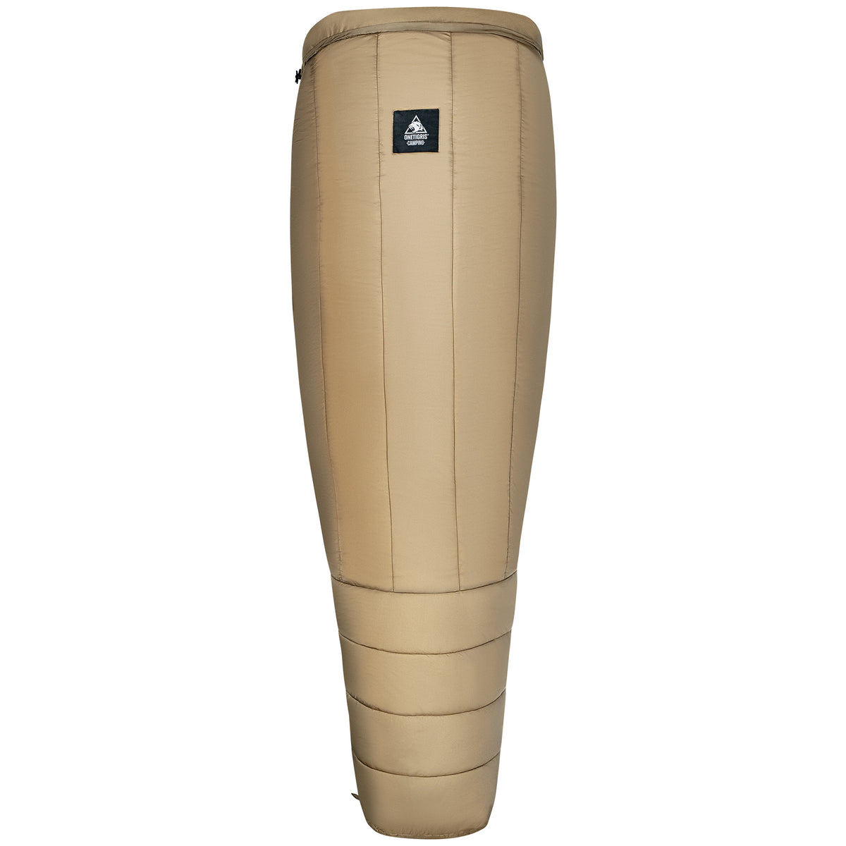 If you’ve tried our under-quilts before, you’ll know what kind of gear we’re offering. Different from traditional sleeping bags, this top quit forms a diamond shaped gap for use with waterproof mats or air mattresses. Why? Weight reduction. A lighter load of a sleep system that offers the same protection from the cold, and a much better down distribution so that feathers don’t clog up at the back ending up as deadweight. It weighs a mere 35oz and functions better than a blanket with its “sock bottom” that wraps around your feet to keep you warm. Use this quilt either spread out or sealed at the bottom via hook-and-loop clasps, and enjoy a toasty night in the outdoors.