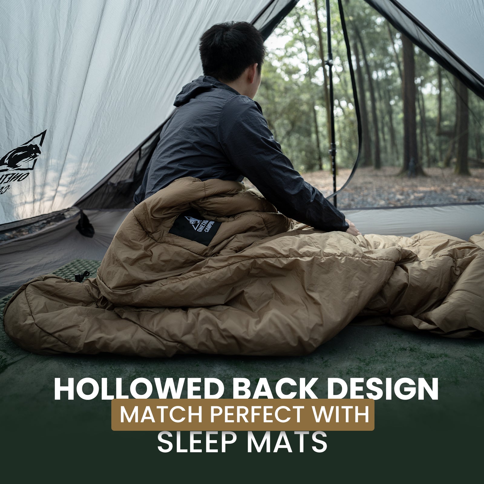 l Hollowed back design for use with sleep mats for a perfect balance between down distribution and heat retention