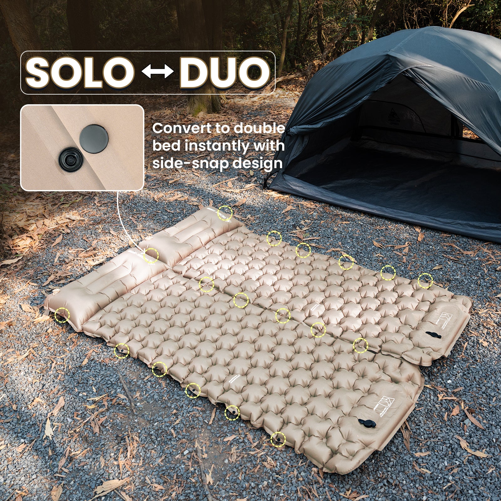 Crafted from rugged 190T polyester fabric with a TPU coating, this mat is tear-resistant, easy to clean, and built to last. Weighing only 1.6lb (760g) and folding down compactly, it’s the perfect companion for camping, trekking, or even home use. Want more space? Snap-button connectors let you link two mats for a cozy double bed—ideal for sharing the adventure with family or friends. Roam free and feel right at home.