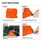 【Rapid Inflation and Storage】As long as the air valve is opened, you can enjoy the comfortable inflatable cushion anytime and anywhere. Open the charging valve, automatically inflate to 80% or mouth inflate 3-5 times, adjust the hardness and comfort of the appropriate cushion, and then tighten the valve. When you're ready to pack, simply release the valve and roll it up for easy travel and storage. Note: No need to remove the valve